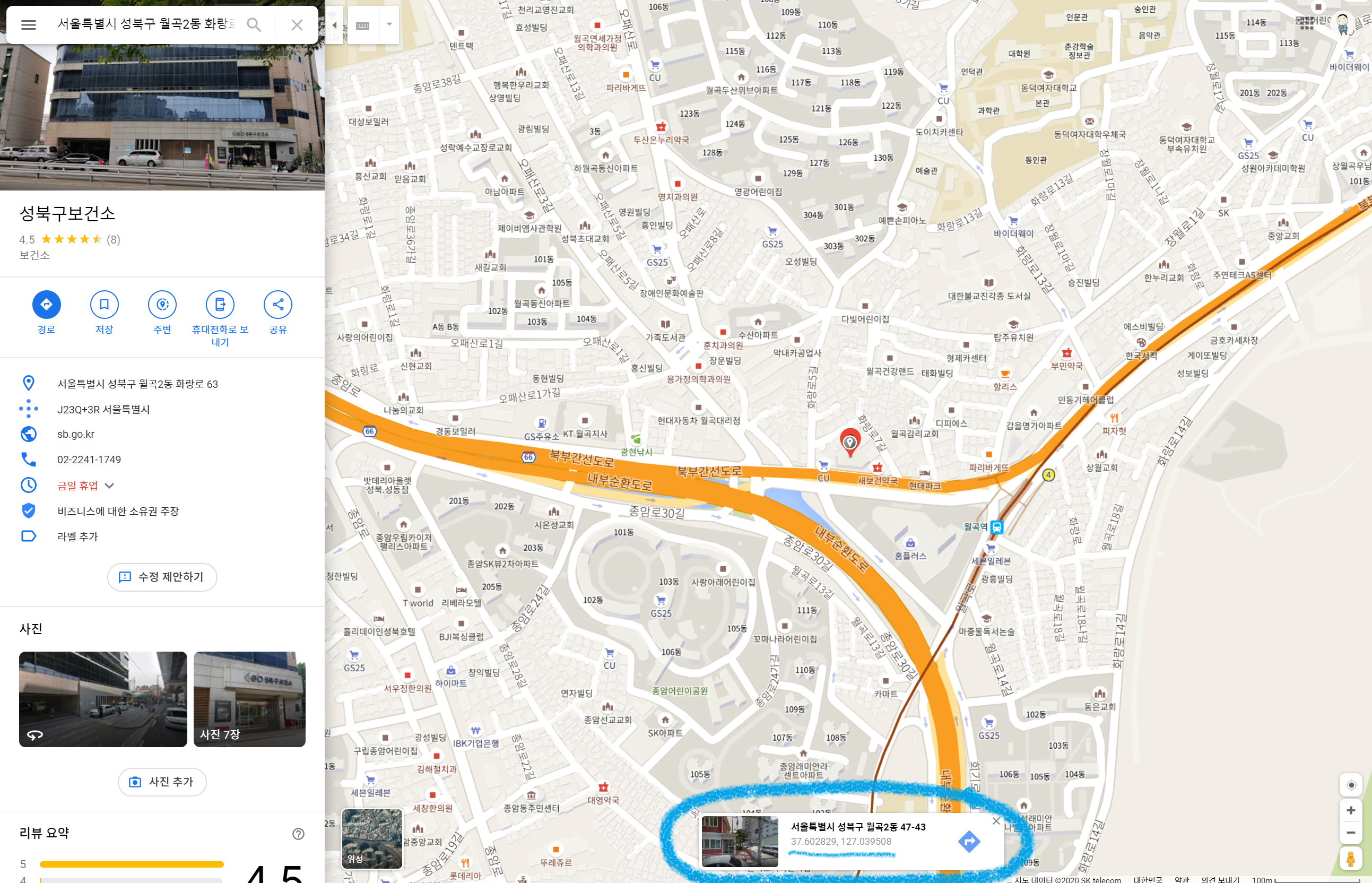 서울특별시 성북구 월곡2동 47-43 위도 경도는 37.602829, 127.039508